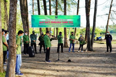 Kepala Dinas Kehutanan Provinsi Sumatera Barat, Yozarwardi U.P, S.Hut, M.Si, meluncurkan secara resmi penggunaan barcode pada seluruh pohon yang ada di Kantor Dinas Kehutanan Provinsi Sumatera Barat, Jl. Raden Saleh 8A Padang.