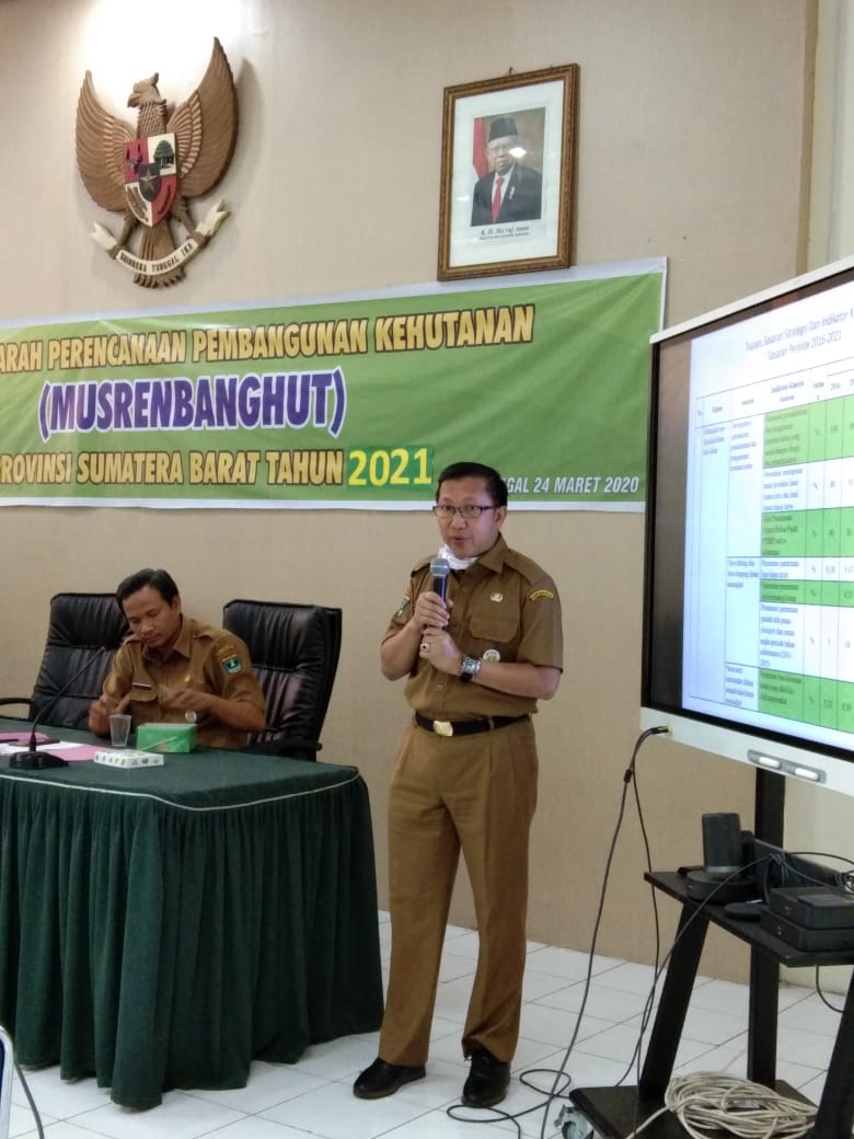 Kepala Dinas Kehutanan Provinsi Sumatera Barat (Kadishut) memimpin Musyawarah Perencanaan Pembangunan Kehutanan (Musrenbanghut) Tahun 2021 Tingkat Provinsi Sumbar pada tanggal 24 Maret 2020. Dalam arahannya, Kadishut menyampaikan perlunya setiap unit kerja di Dishut Prov. Sumbar dan UPT KemenLHK untuk mempertimbangkan pengembangan perhutanan sosial, optimalisasi manfaat hutan, perlindungan dan RHL, serta peningkatan tata kelola organisasi dalam struktur anggaran tahun 2021.