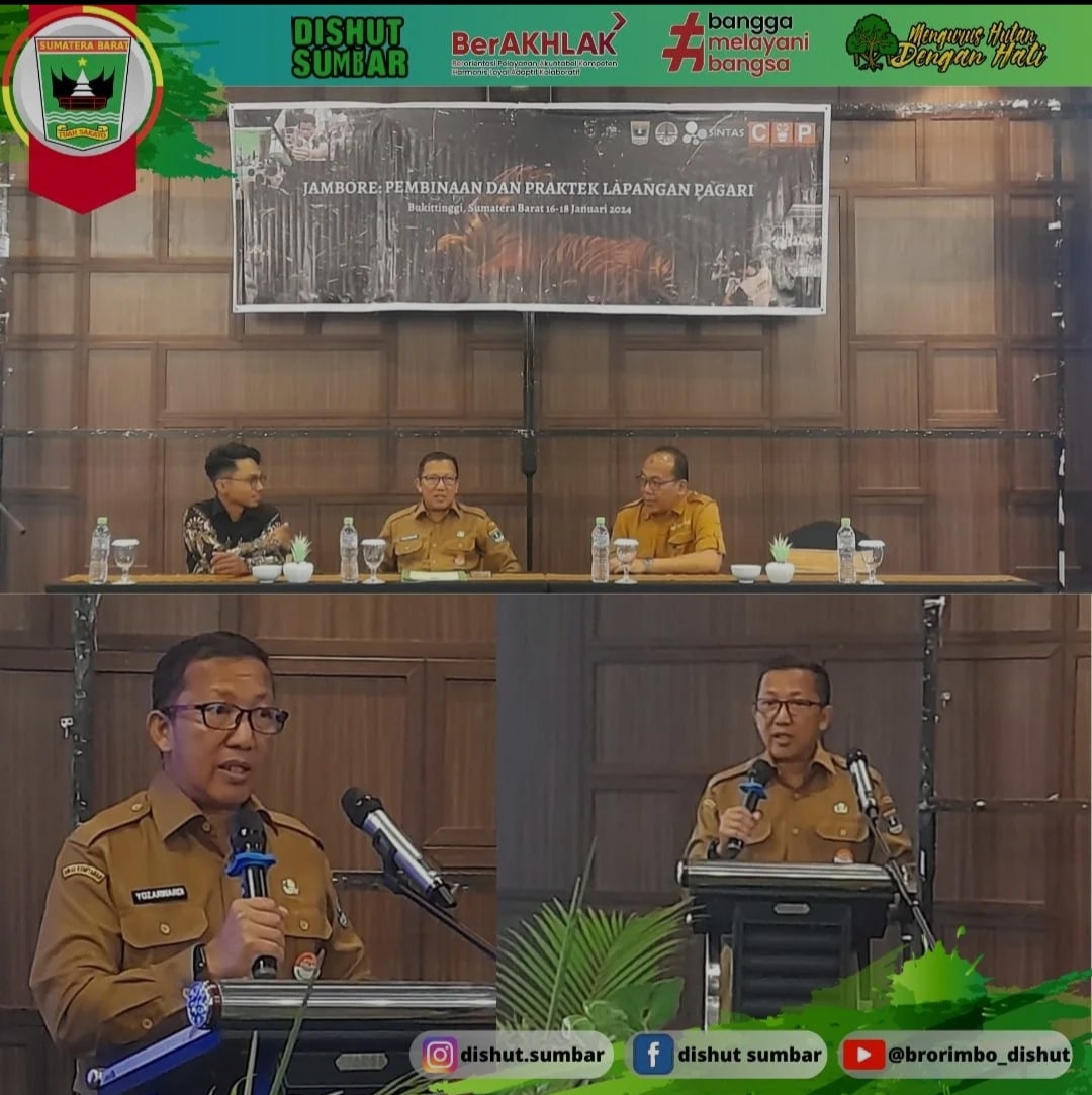 Mewakili Gubernur Sumatera Barat Bapak Mahyeldi Ansarullah dalam rangka Jambore : Pembinaan dan Praktek Lapangan Pagari, Kepala Dinas Kehutanan Provinsi Sumatera Barat Bapak Ir. Yozarwardi U.P, S.Hut, M.Si, IPU menghadiri sekaligus melakukan pembukaan acara yg dilaksanakan di Holet Balcone, Jalan Raya Bukittinggi Medan KM 7 Padang Hijau, Gadut, Kec. Tilatang Kamang, Kab. Agam