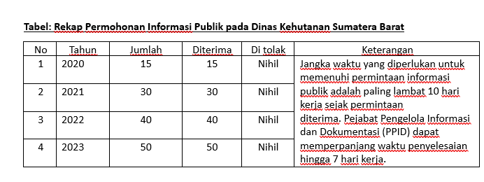 Jumlah Permohonan Informasi Publik yang ada di Dinas Kehutanan Provinsi Sumatera Barat