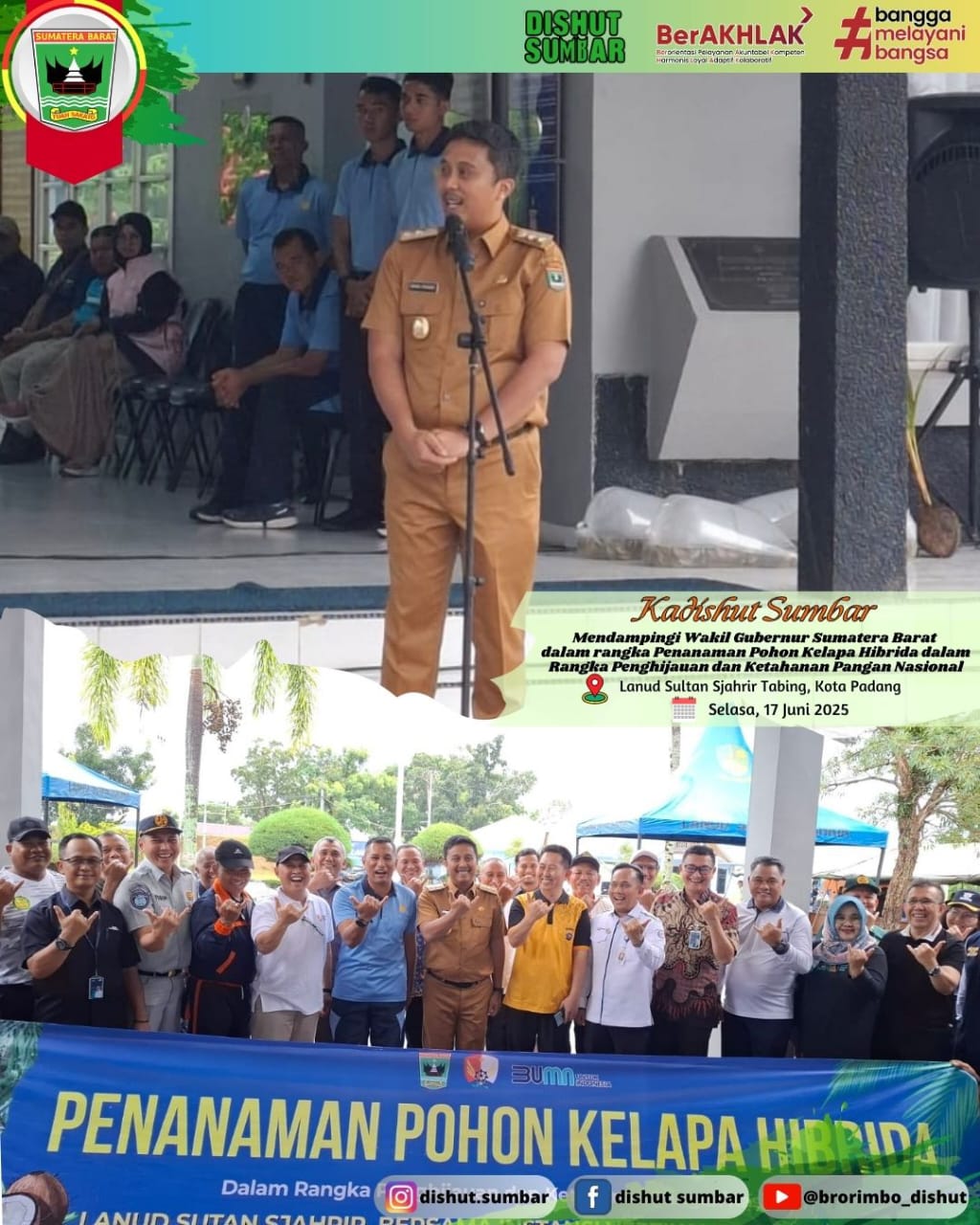 Kadishut Sumbar mendampingi Wakil Gubernur pada kegiatan "Penanaman Pohon Kelapa Hibrida dalam Rangka Penghijauan dan Ketahanan Pangan Nasional" di Lanut Sutan Sjahrir Kota Padang, Selasa 17 Juni 2025.