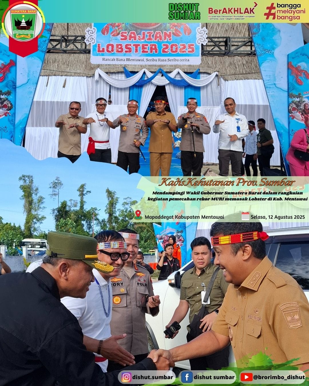 Kepala Dinas Kehutanan mendampingi Wakil Gubernur dalam kegiatan Masak Lobster sebagai pemecahan rekor MURI di Mapaddegat, Kabupaten Mentawai pada Selasa 12 Agustus 2025. Masak besar yang dilakukan oleh Chef Bobon Santoso bersama Wakil Gubernur Sumbar, Kapolda Sumatera Barat serta jajaran Forkopimda dan masyarakat setempat.