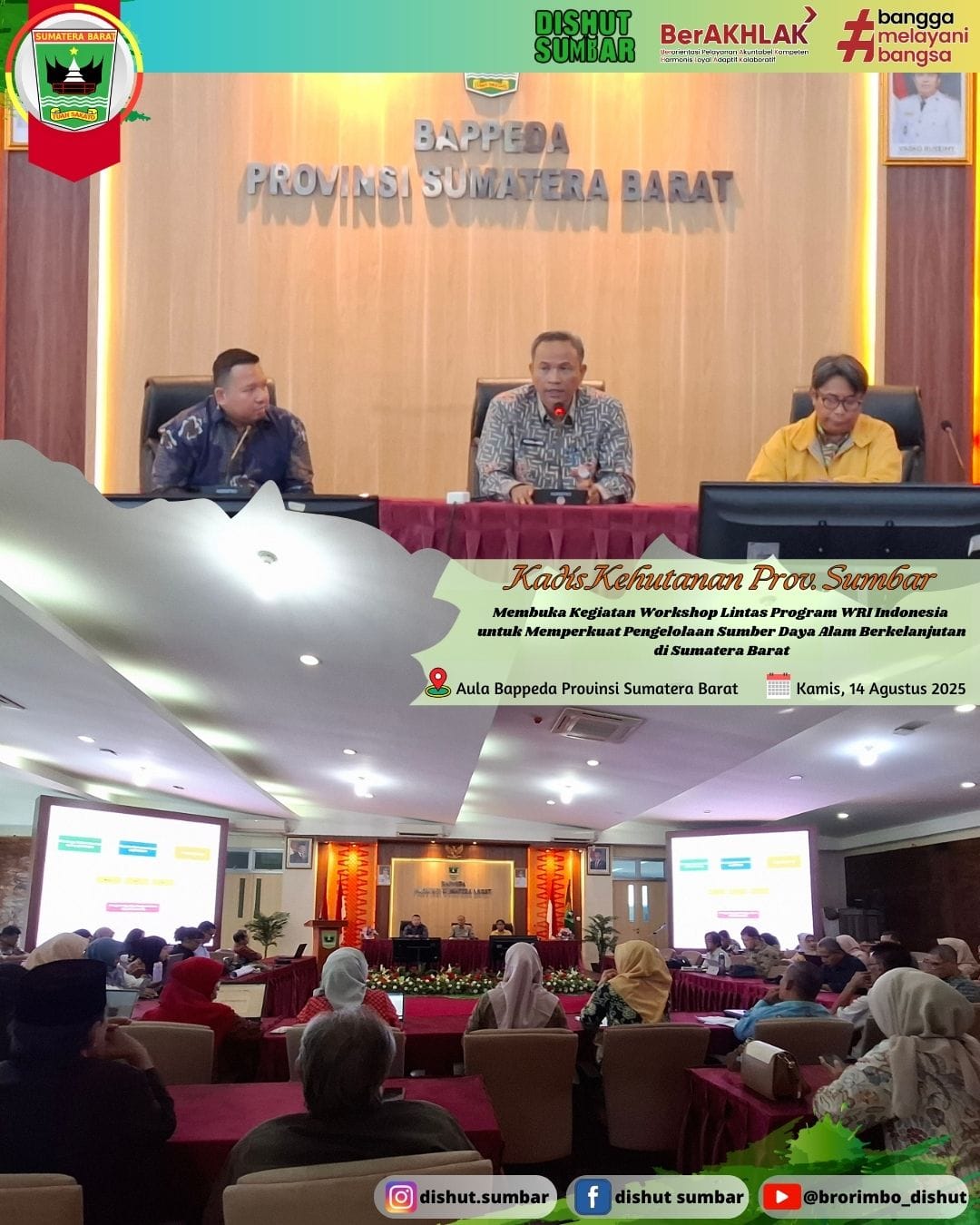 Kepala Dinas Kehutanan Provinsi Sumatera Barat @ferdinalasmin membuka kegiatan Workshop Lintas Program WRI Indonesia untuk Memperkuat Pengelolaan Sumber Daya Alam Berkelanjutan di Sumatera Barat di Ruang Rapat Bappeda Provinsi Sumatera Barat pada Kamis, 14 Agustus 2025.