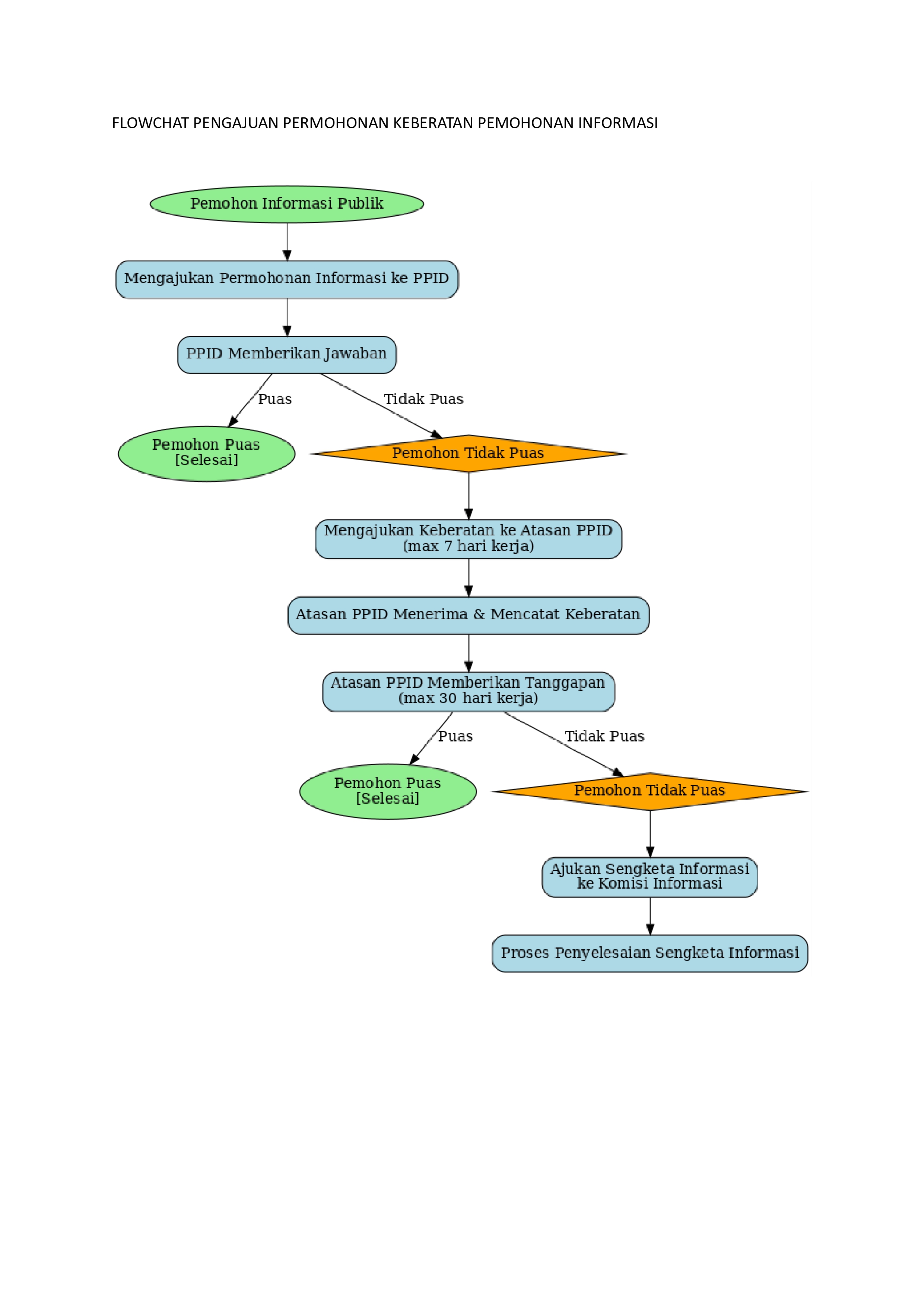 Apabila Pemohon Informasi tidak puas dengan keputusan Atasan PPID, maka pemohon informasi dapat mengajukan keberatan kepada Komisi Informasi dalam jangka waktu 14 (empat belas) hari kerja sejak tanggapan dari atasan PPID diterima oleh Pemohon Informasi Publik.