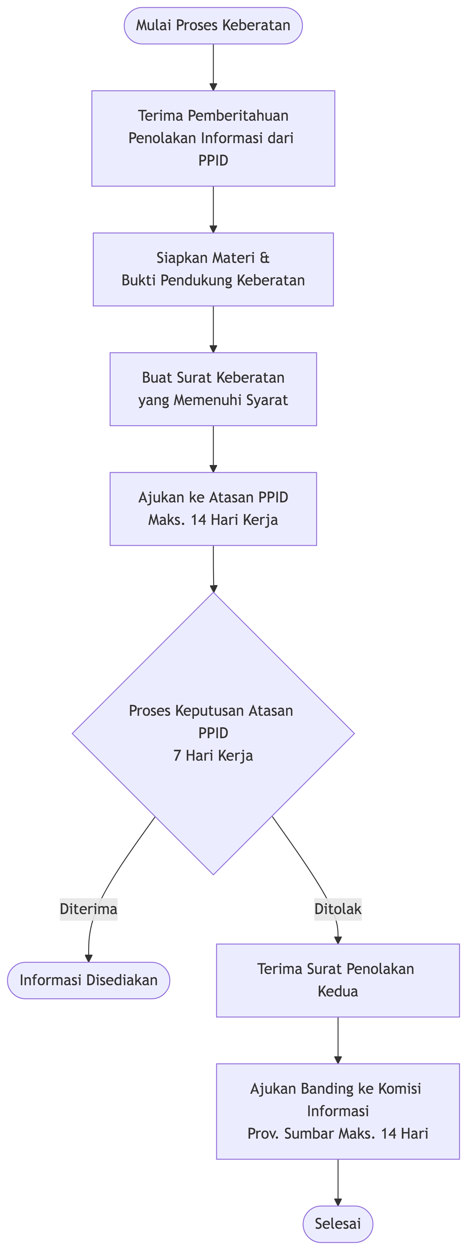 Keputusan 6b: Ditolak. Atasan PPID mengeluarkan surat penolakan kedua yang harus disertai dengan alasan yang jelas dan mendasar sesuai hukum. Surat ini sangat penting untuk langkah banding selanjutnya.