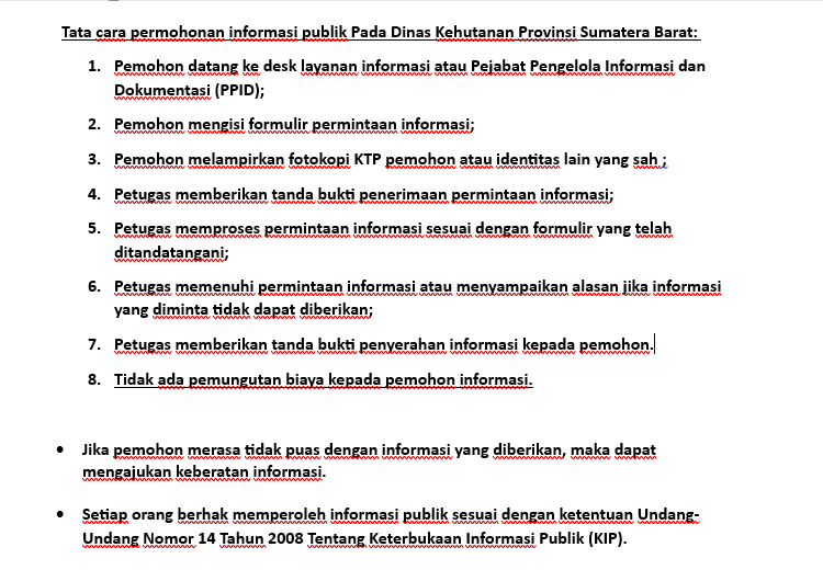 Tata Cara Permohonan Informasi Publik pada Dinas Kehutanan Sumbar :